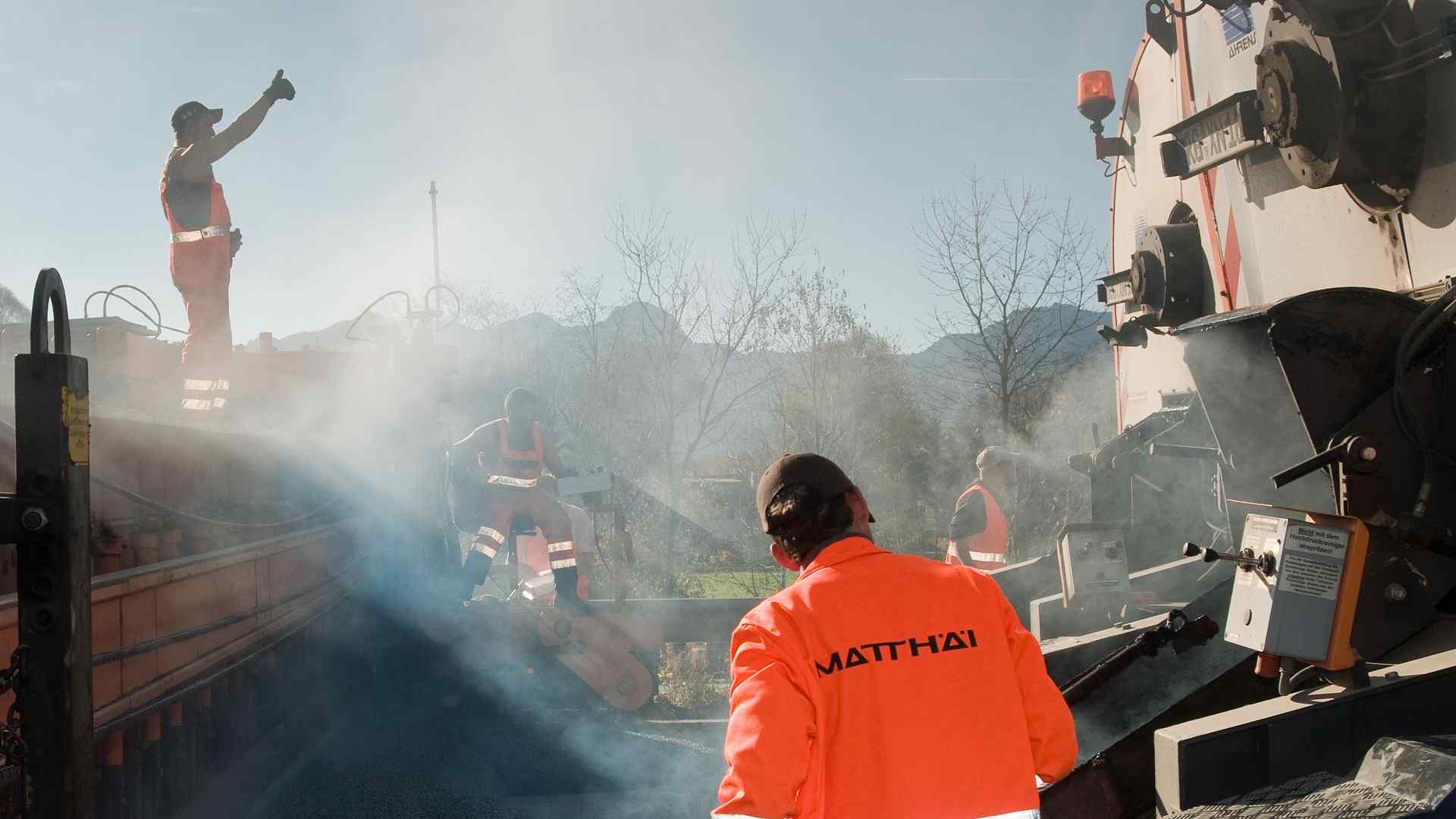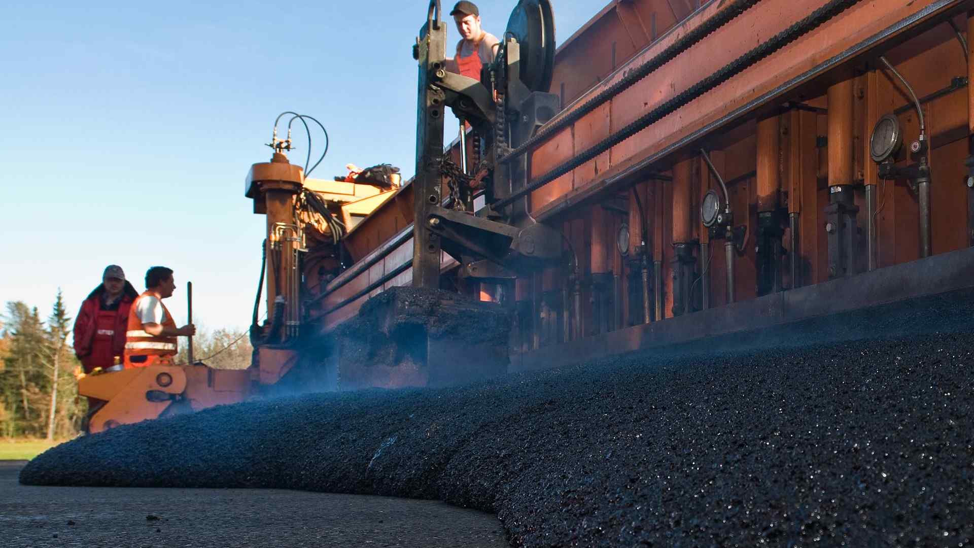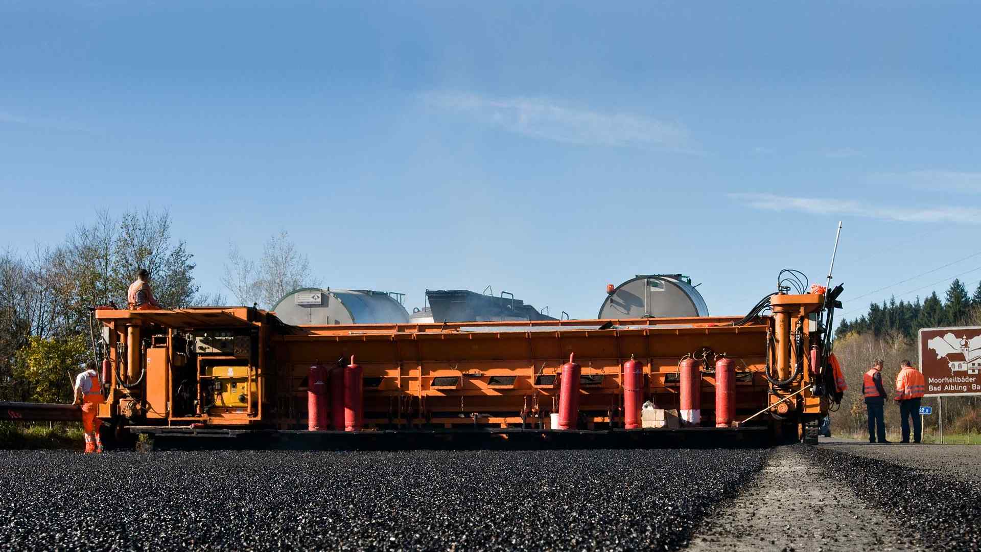 | ca. 70.000 m² Gussasphaltdeckschicht mit Bohle einbauen – Einbaubreite 11,55 m – 3,5 cm Einbaustärke |