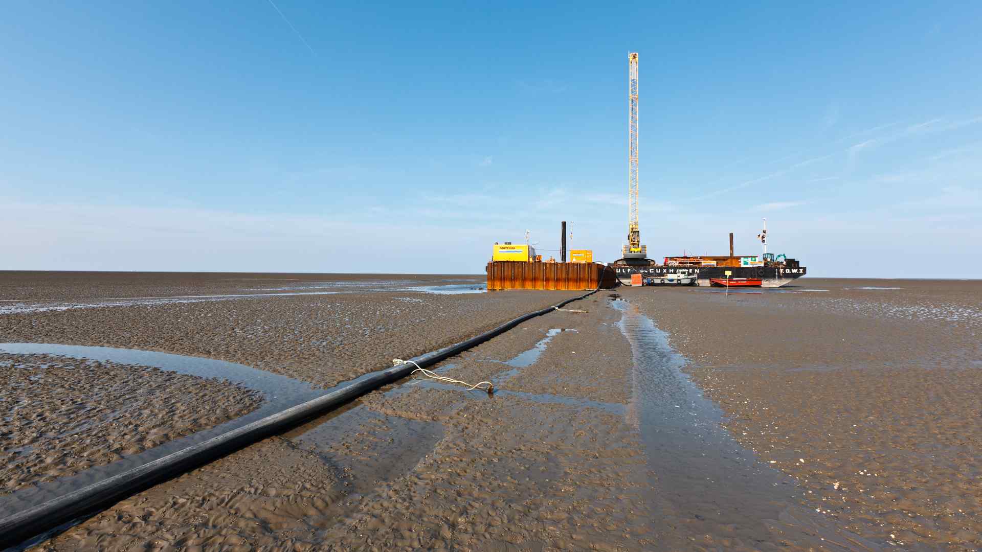 - Die seeseitig zu erfolgenden Arbeiten sind den Gezeiten und starken Wettereinflüssen der Nordsee ausgesetzt.