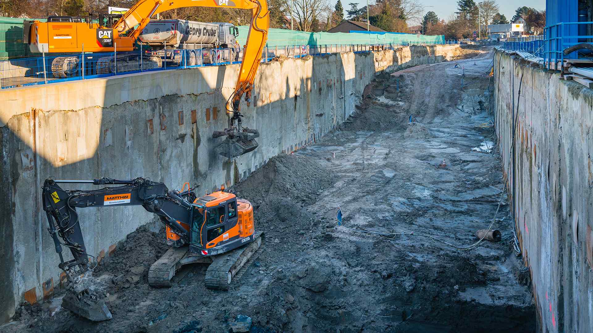 | 550.000 | m³ | Baugrubenaushub bis 14 m Tiefe, Transport zum Landschaftsbauwerk und profilgerechter Einbau | ||