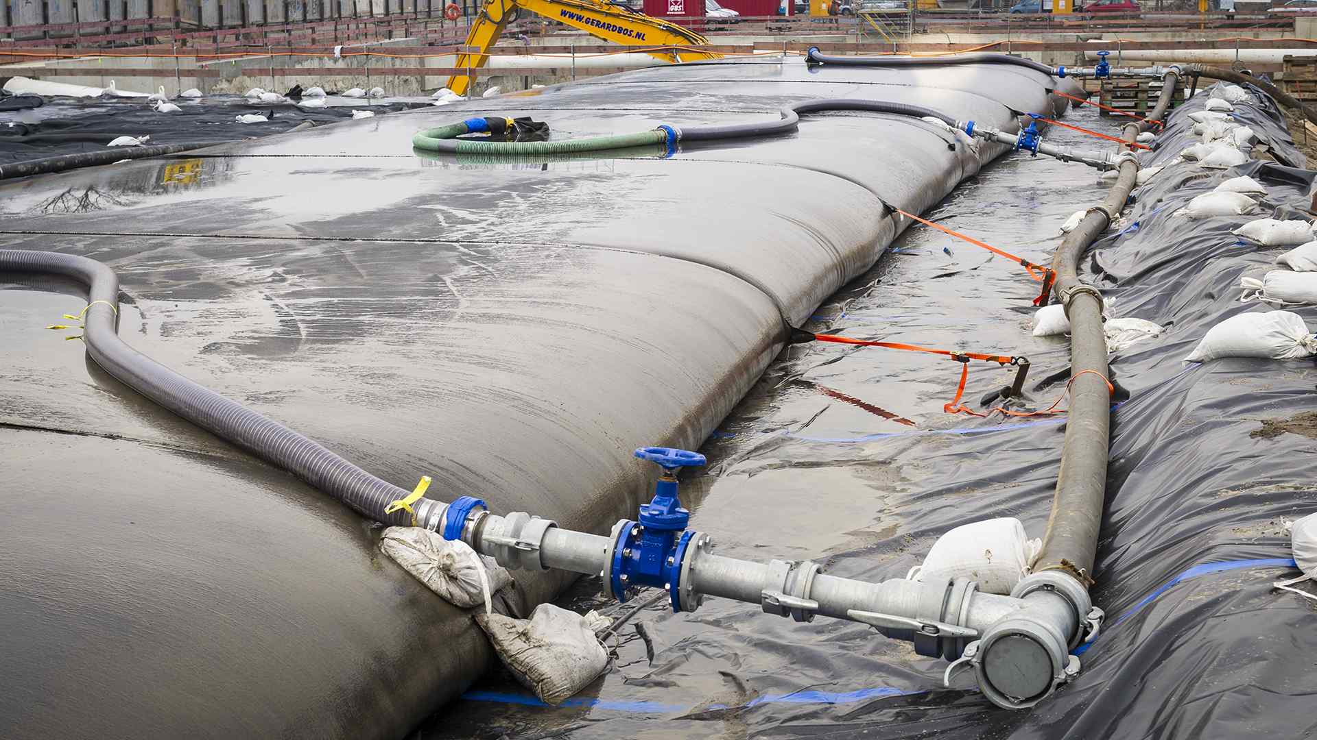 | 5.000 | m³ | Schlammabsaugung aus der gebaggerten Baugrube unter Zuhilfenahme des "Flocmaster" und geotextiler Säcke |