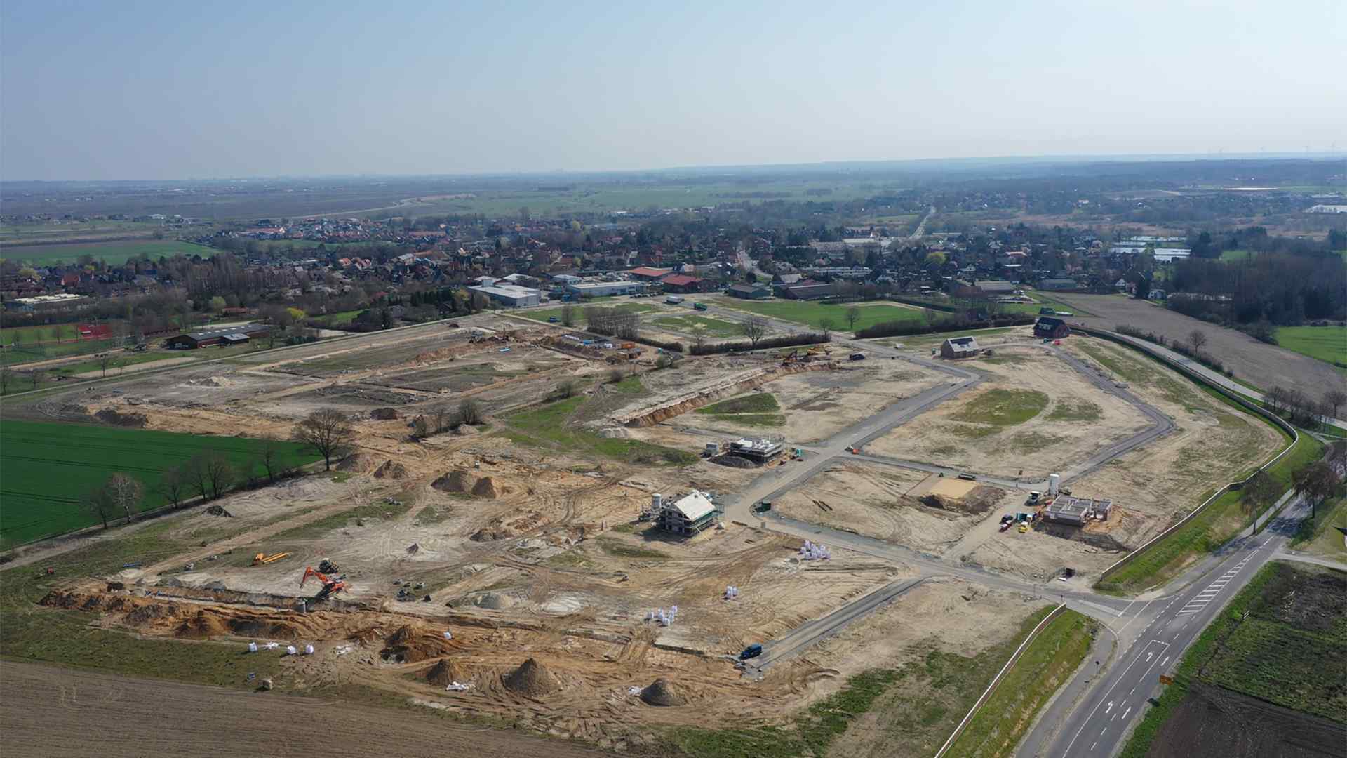 Horneburg ist das Zentrum der Samtgemeinde Horneburg. Damit hat es die besondere Entwicklungsaufgabe, für die „Sicherung und Entwicklung von Wohnstätten“ zu sorgen. Der Ortskern ist als zentraler Versorgungsbereich festgelegt. Auf einem Plangebiet von 24 ha sollen 250 Einfamilien- und Doppelhäuser sowie punktuell andere Haustypen entstehen. Im Rahmen einer ARGE erhielt Matthäi den Auftrag zur Errichtung grundlegender Ver- und Entsorgungsinfrastrukturen. Nach einem Rohrgrubenaushub von knapp 11.500 m³ bei einer Tiefe von bis zu 4,75 m sowie einer Bodenverbesserung von 5.850 m³ im Baumischverfahren erfolgte auf einer Länge von 3.700 m der Einbau einer Grundwasserhaltung. Zusätzlich wurden Hochlast-Vollwand-Kanalrohre verschiedener Stärken sowie über 360 Revisionsschächte verschiedener Tiefen eingebaut.