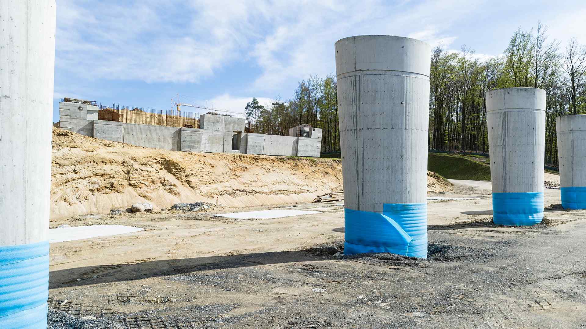 - Bauwerk lagert auf 14 Achsen, die bis auf eine Widerlagerachse mittels Großbohrpfählen tiefgegründet sind
