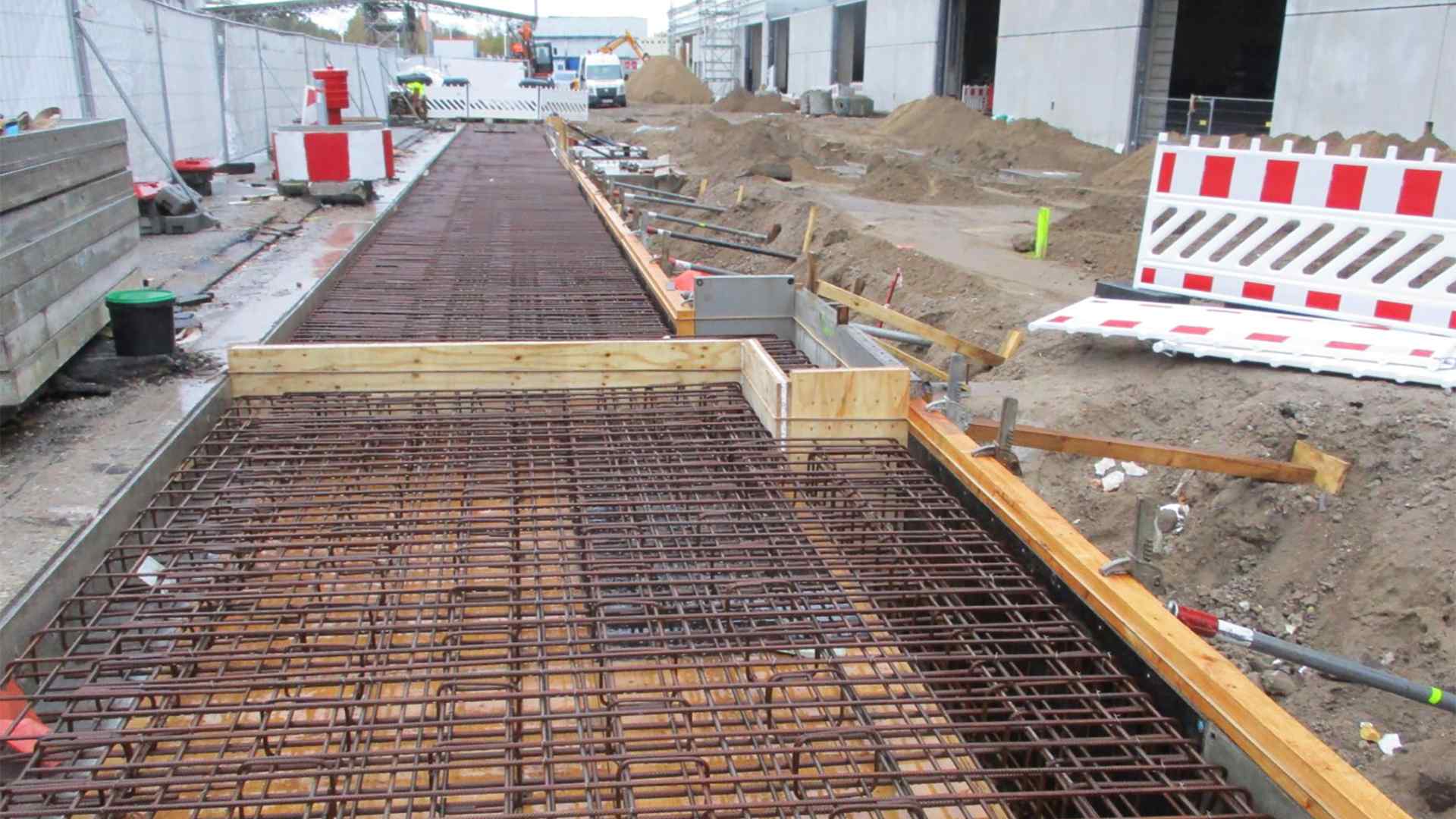Matthäi Berlin hat für diese neue Halle die vorbereitenden Abbruch- und Erdbauarbeiten sowie die Straßenbau- und Entwässerungsarbeiten in den Außenanlagen durchgeführt. Dazu gehören neben Fahrstraßen und Parkflächen auch Ingenieurbauwerke, Niederschlagsentwässerung, Schmutzwasserentsorgung, die Verlegung von Trinkwasserleitungen und ein Kabelschutzsystem.