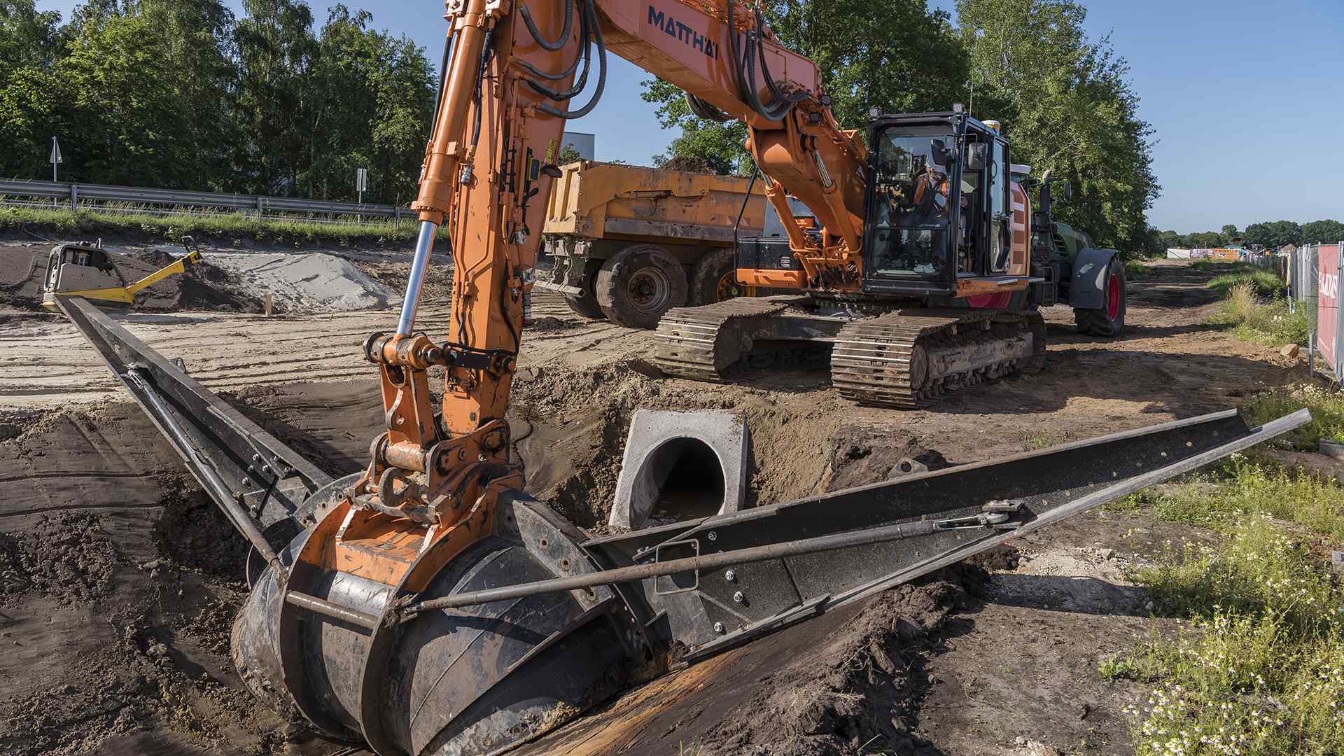 Diese Baumaßnahme beinhaltet das Herstellen der Straßen- und Nebenanlagen, Erdarbeiten, Entwässerungsanlagen, erforderliche Stützwandelemente und Winkelstützen, Markierungsarbeiten, Kleinbeschilderungen, Rückbau Großbeschilderung sowie vorbereitende Arbeiten für die Lichtsignalanlagen und Beleuchtungsarbeiten.