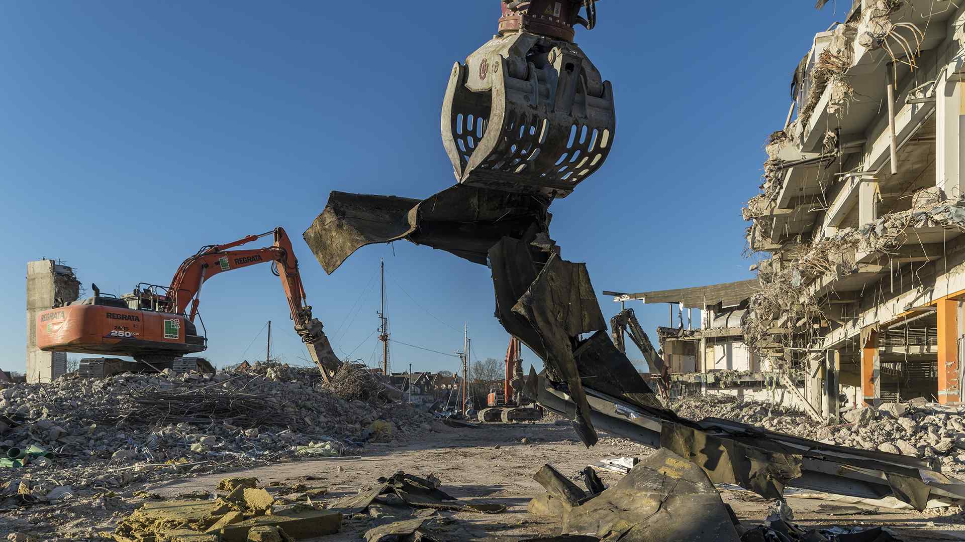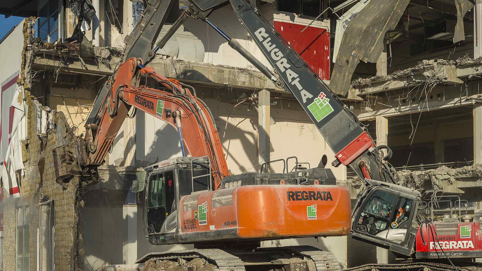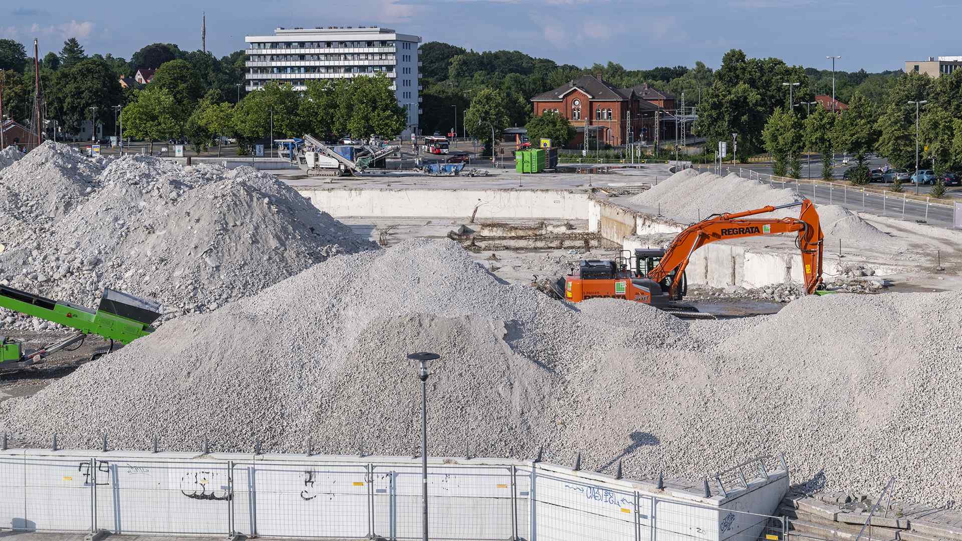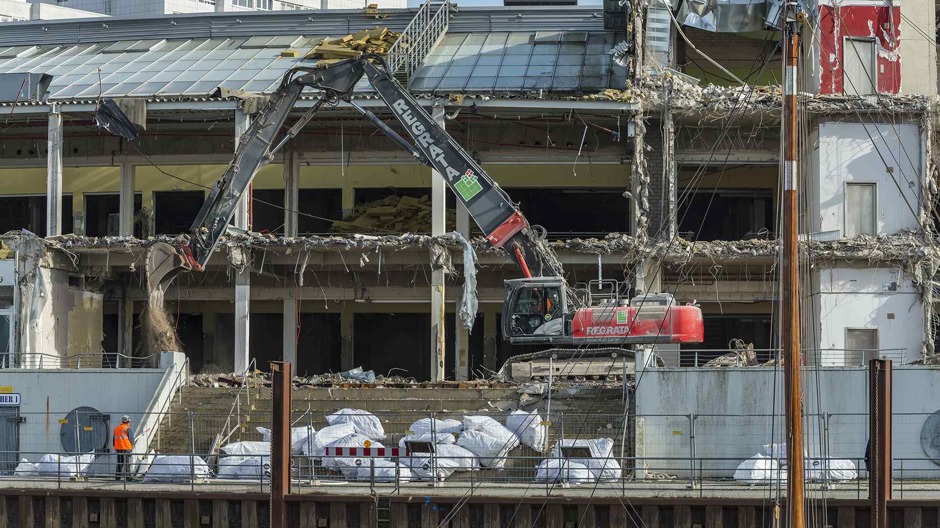 Auf einer der größten Baustellen Bremens stellt der Abbruchspezialist Regrata eindrucksvoll seine Kompetenz unter Beweis. Das Unternehmen der Matthäi-Gruppe realisiert den Abbruch eines Shopping-Centers, um Platz für den Neubau eines Stadtquartiers zu schaffen. Das Großprojekt wird ausschließlich mit eigenen Fachkräften und dem eigenen Fuhr- und Maschinenpark umgesetzt. Große Teile des Abbruchmaterials wird direkt auf der Baustelle getrennt und anschließend dem Recycling und der Entsorgung zugeführt.