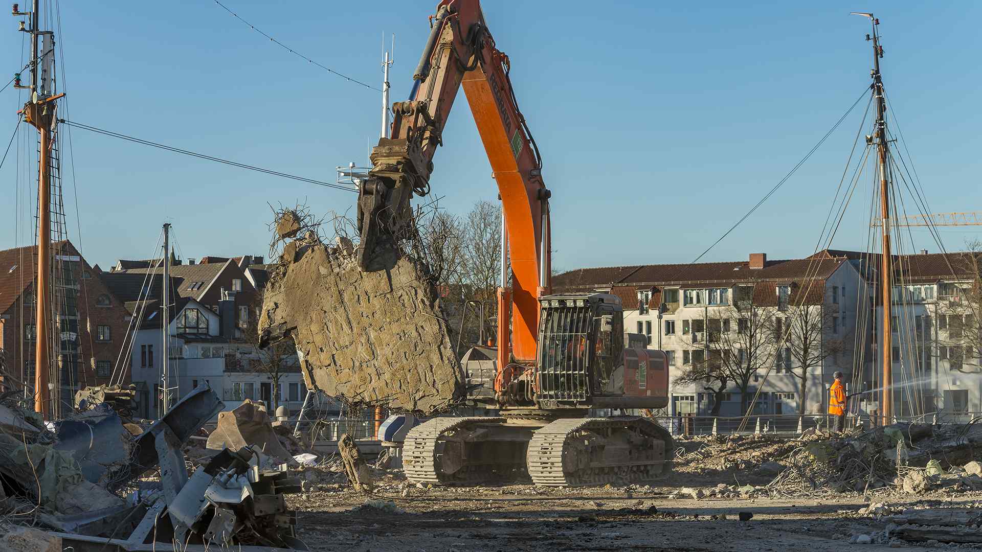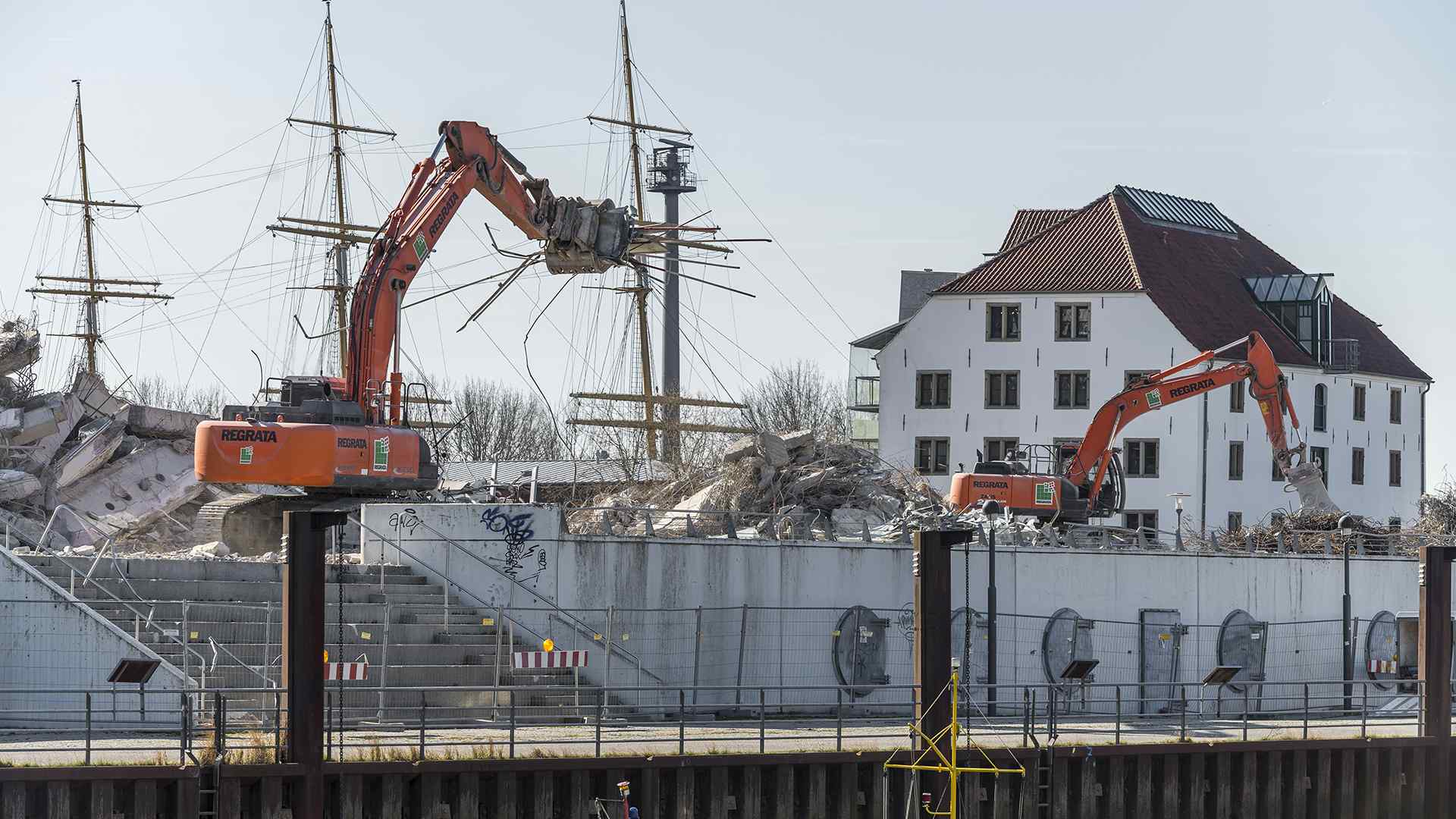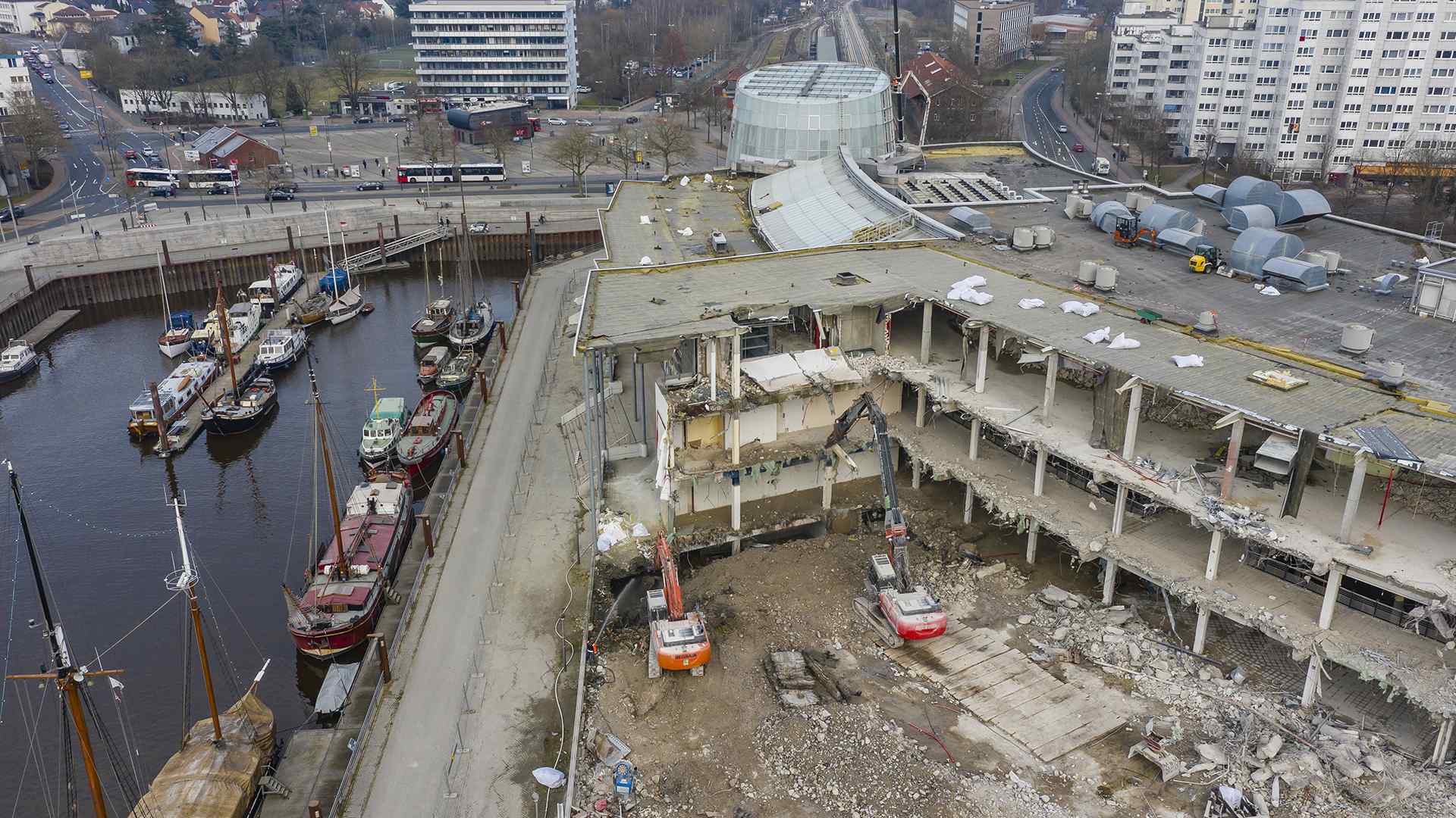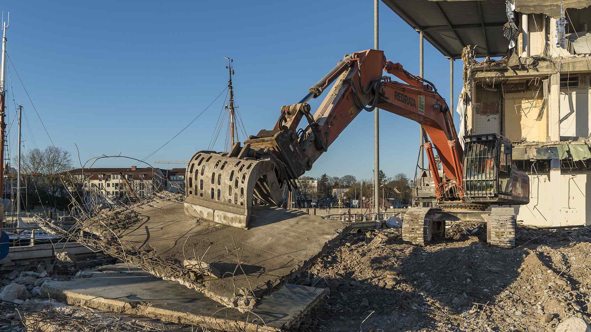 Auf einer der größten Baustellen Bremens stellt der Abbruchspezialist Regrata eindrucksvoll seine Kompetenz unter Beweis. Das Unternehmen der Matthäi-Gruppe realisiert den Abbruch eines Shopping-Centers, um Platz für den Neubau eines Stadtquartiers zu schaffen. Das Großprojekt wird ausschließlich mit eigenen Fachkräften und dem eigenen Fuhr- und Maschinenpark umgesetzt. Große Teile des Abbruchmaterials wird direkt auf der Baustelle getrennt und anschließend dem Recycling und der Entsorgung zugeführt.