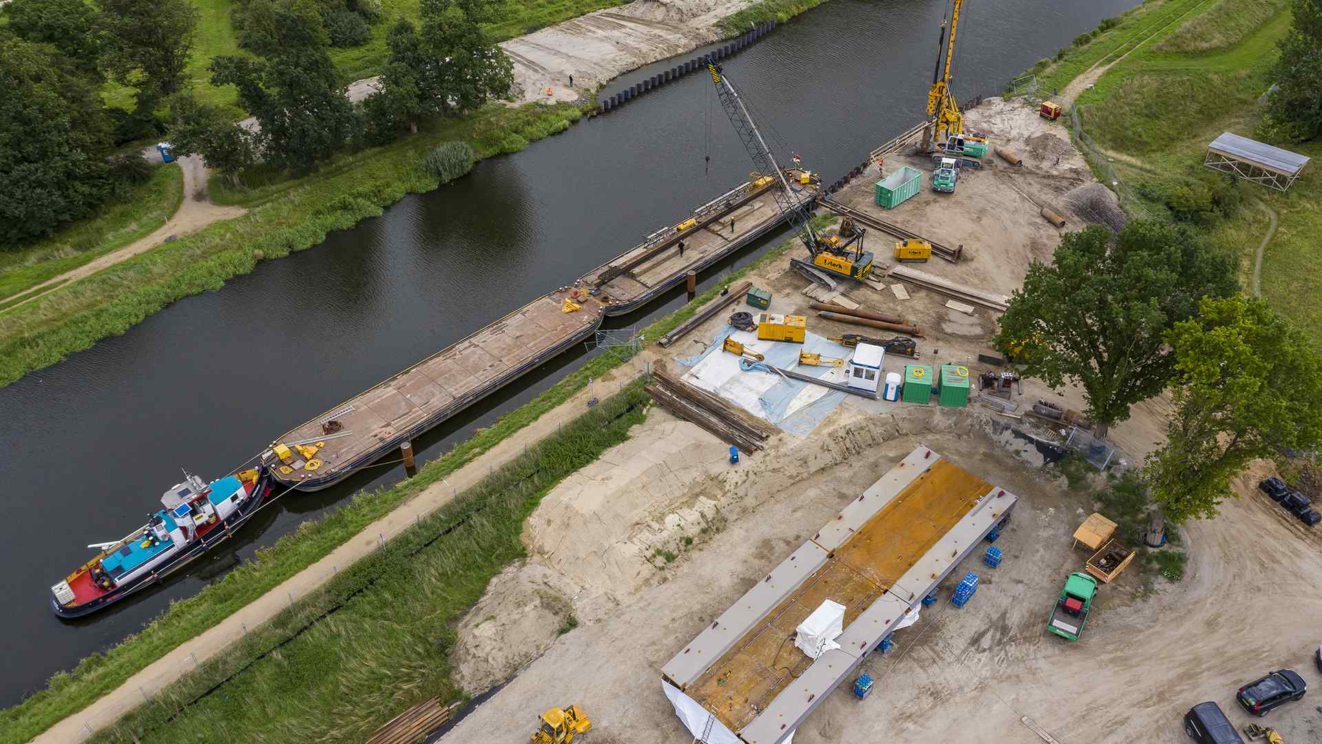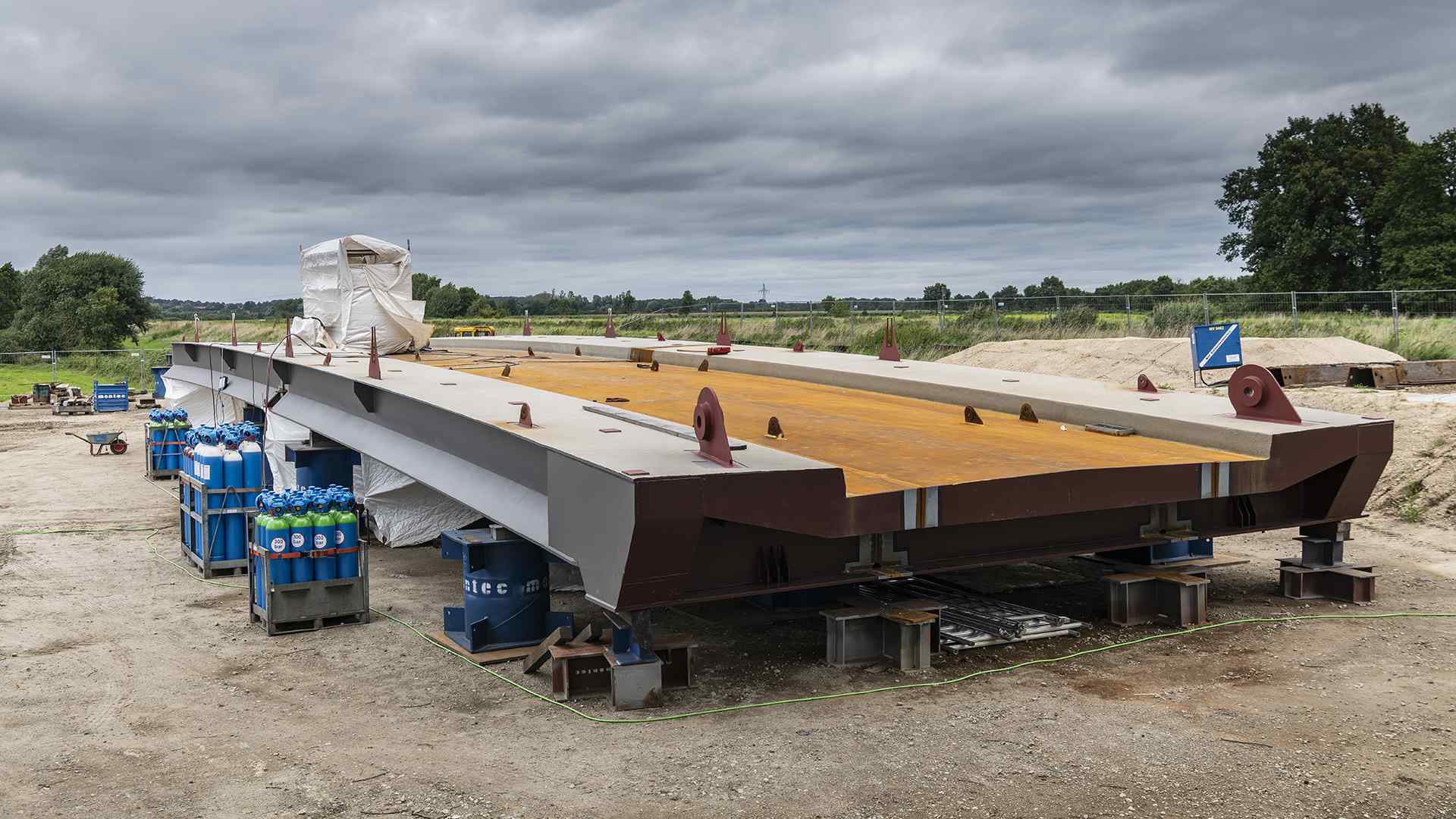 Matthäi Leezen ist mit der Errichtung einer neuen Brückenanlage als Einfeld-Konstruktion in Achse der vorhandenen Brückenanlage beauftragt worden. Das Projekt beinhaltet die Anpassung der Straßenrampen, des Notgehweges sowie der Entwässerung an die neue und erhöht eingebaute Brücke. Der Bau hat nach der sogenannten „Brückengradiente“ zu erfolgen, welche sich aus der geforderten Durchfahrtshöhe unterhalb der Brücke ergibt. Des Weiteren liegt der Hochpunkt auf der Brücke in der Überbaumitte.