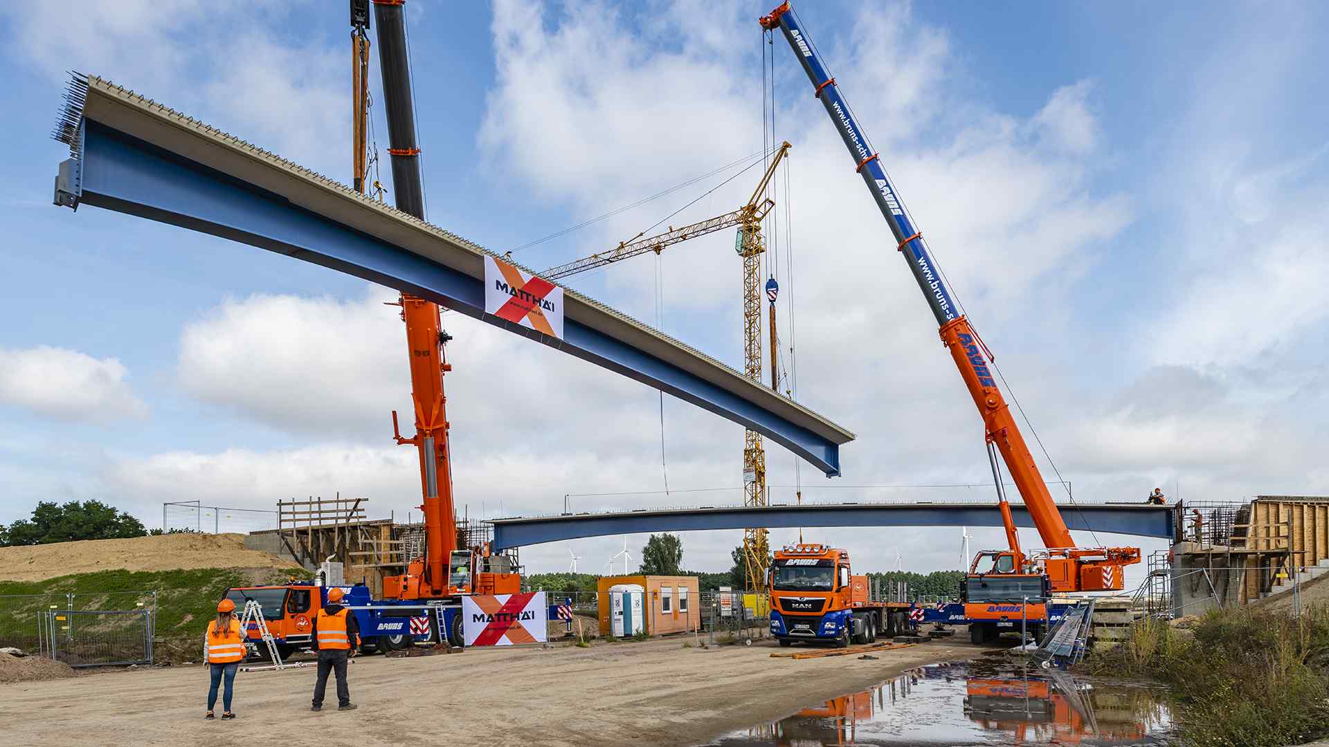 Die passgenaue Montage der Verbund-Fertigteil-Träger (VFT) auf dem Bauabschnitt Dolle/ L29 bis AS Lüderitz (L30) BW 34Ü ist erfolgreich abgeschlossen.