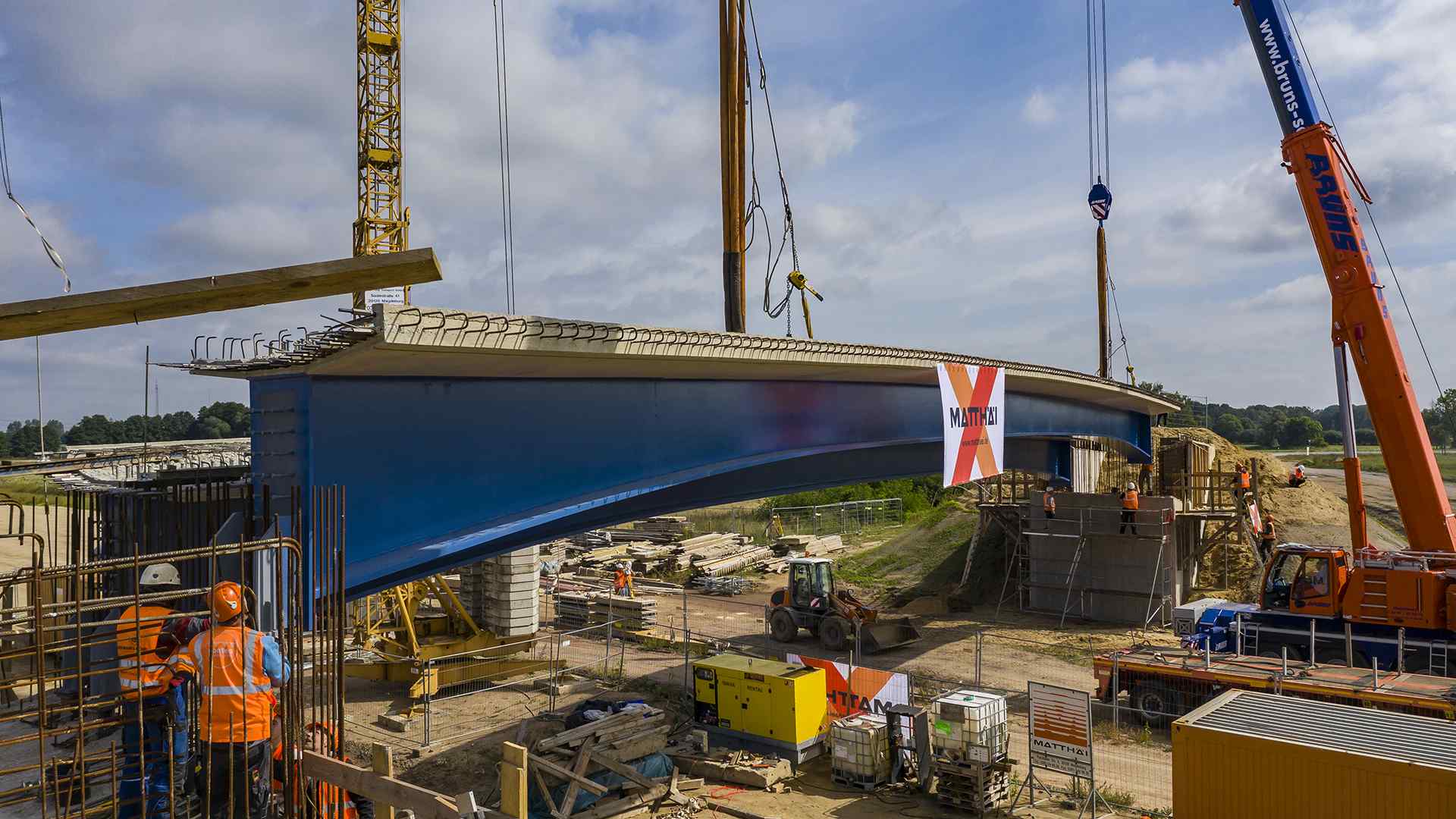 Das neue Bauwerk wird statisch als Einfeldrahmen mit einem Überbau aus Verbundfertigteilen mit Ortbetonfahrbahnplatte ausgebildet. Die Stützweite beträgt ca. 38,6 m. Das Bauwerk hat 2 Fahrspuren mit jeweils 2,50 m Breite und seitliche Kappen (Breite 70 cm).