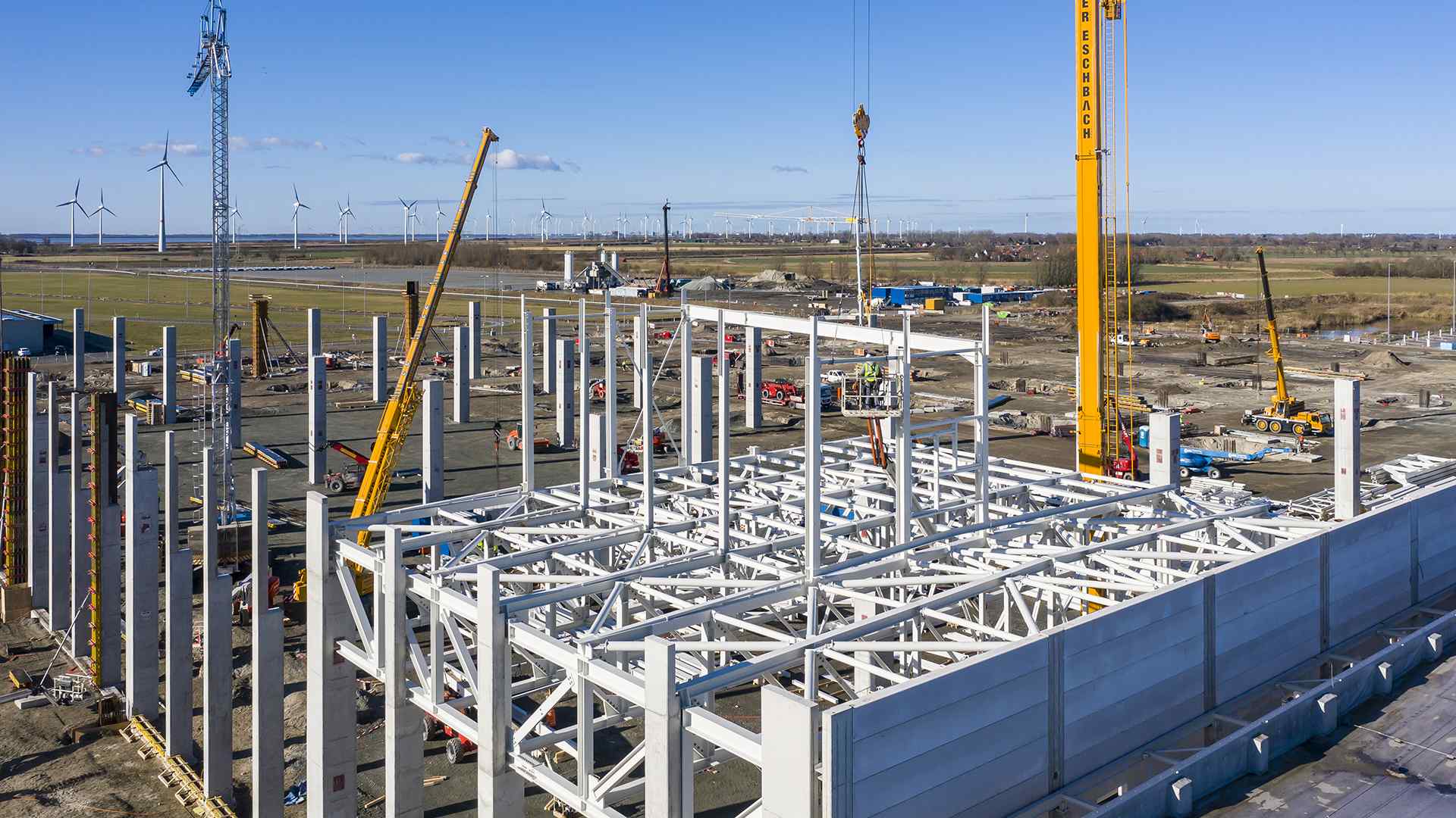 Durch die Entscheidung im Werk Emden zukünftig Elektroautos herzustellen, beauftragte Volkswagen AG den Neubau einer Montagehalle.