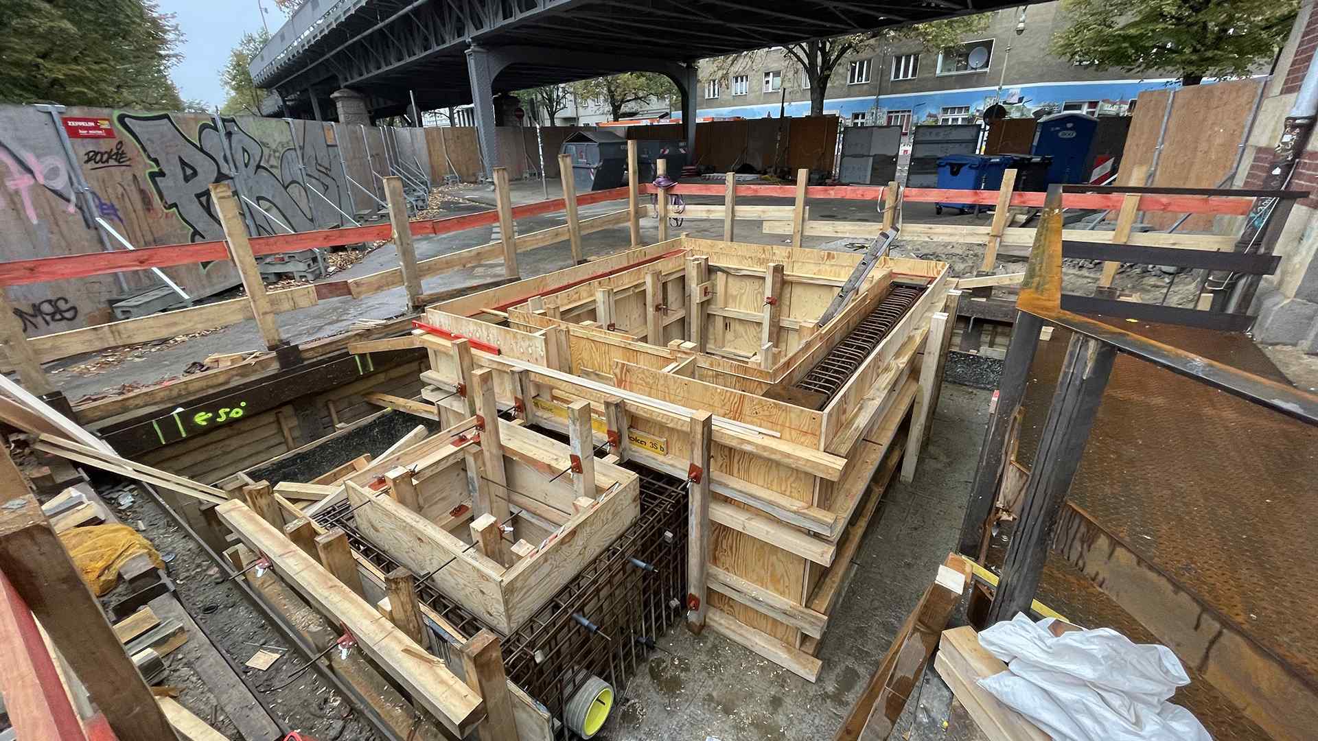 Im Straßenbereich werden die Aufzugsschächte als Stahlkonstruktionen mit einer Fassade aus Verbundsicherheitsglas hergestellt. Die Unterfahrten mit einer Tiefe von 1,40 Metern unter der Oberkante der Straßenebene werden in Stahlbeton ausgeführt. Der Übergang von der Stahlbetonkonstruktion zum Stahl-Tragsystem erfolgt bodengleich ohne Sockel. Die Aufzugsschächte erhalten im Straßenbereich einen Schneefang, der an das Entwässerungsnetz der Berliner Wasserbetriebe angeschlossen wird.