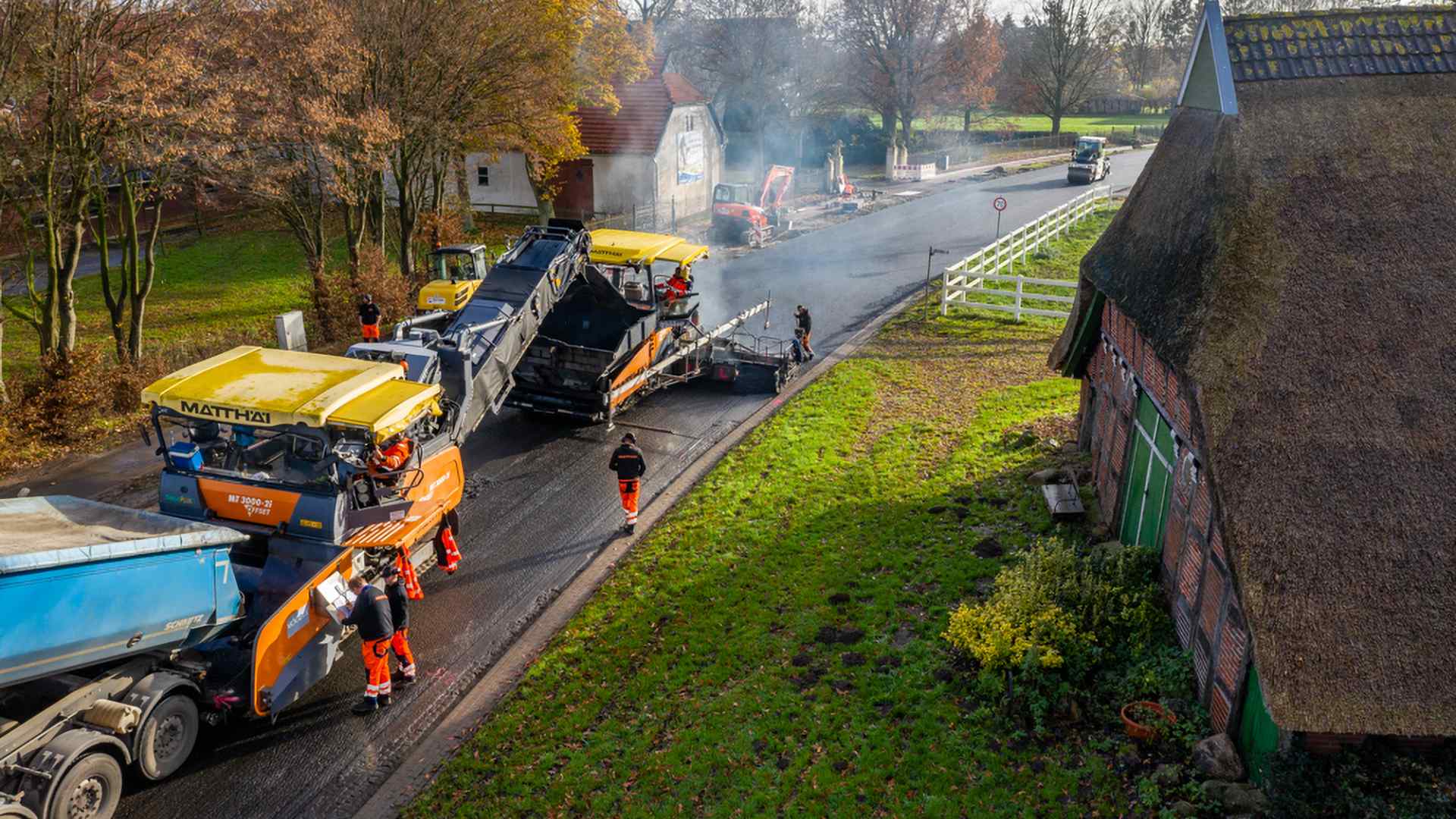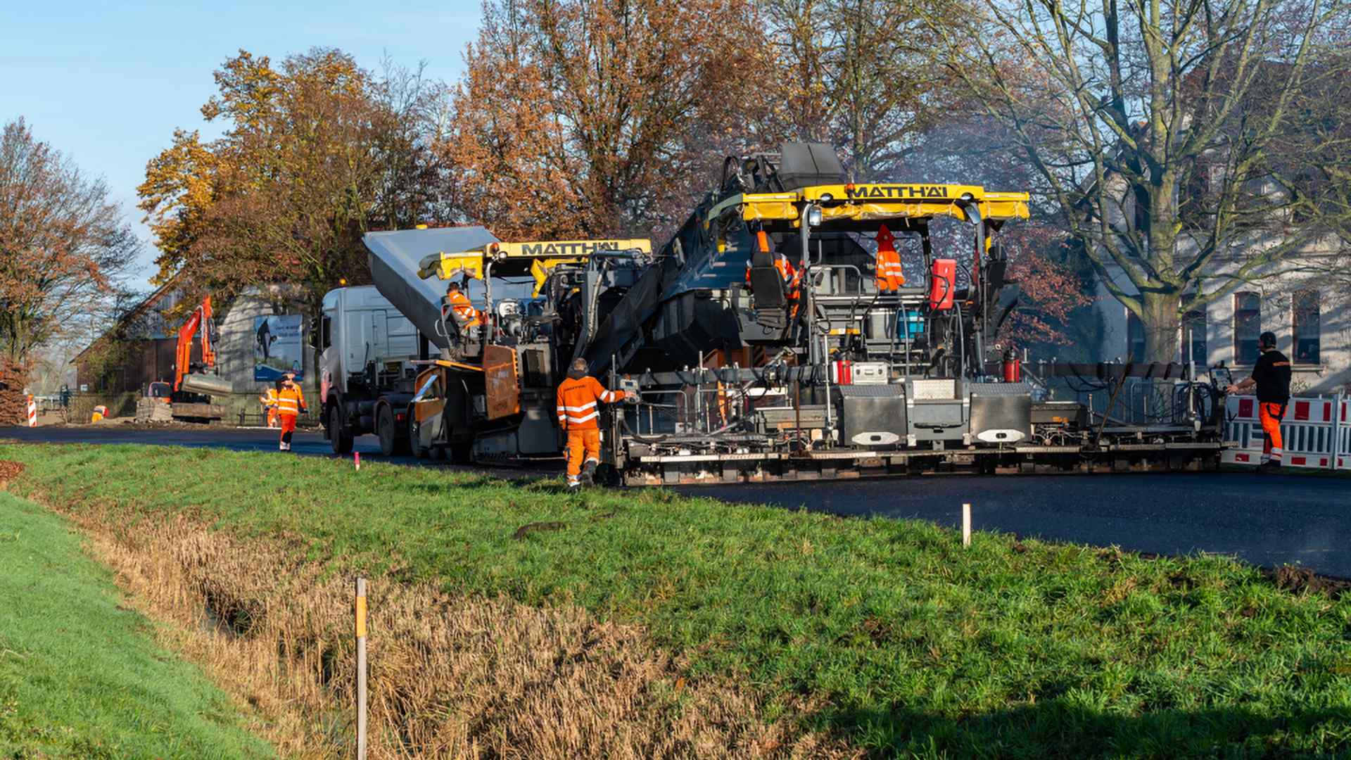 Im Auftrag der NLStBV Geschäftsbereich Oldenburg wurde die Fahrbahn sowie der Radweg der B212 zwischen Huntebrück und Berne erneuert.