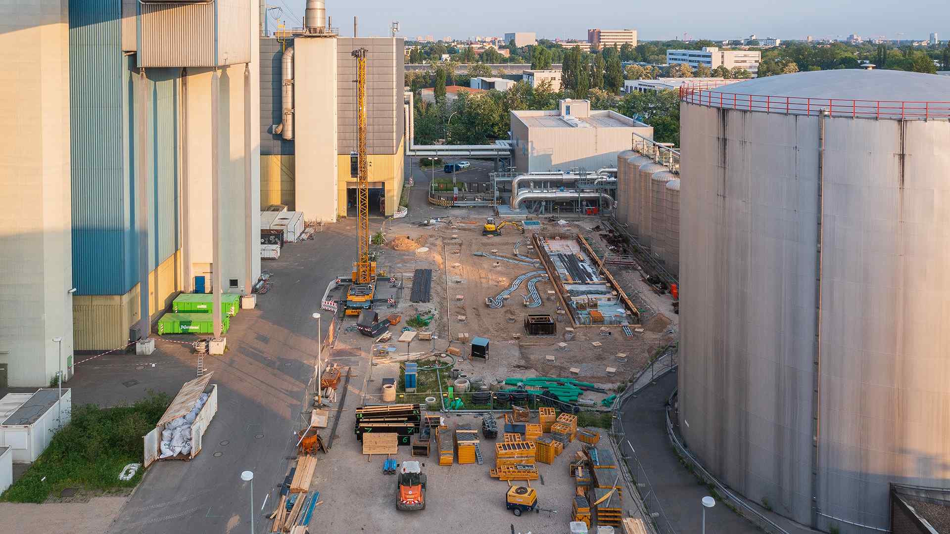 Am Standort des HKW Reuter West befinden sich die beiden, in Betrieb befindlichen, baugleichen Blöcke D und E sowie die durch uns zuvor errichteten Elektroden- und Gas-Heißwasser-Erzeuger. Zur Optimierung des Einsatzes der Fernwärmeerzeugung und zur Sicherstellung einer kontinuierlichen Versorgung, hat der Auftraggeber uns im Rahmen des Neubaus von Europas größtem Wärmespeicher (56.000m³ Fassungsvermögen), mit dem nachfolgenden Leistungsumfang beauftragt:
