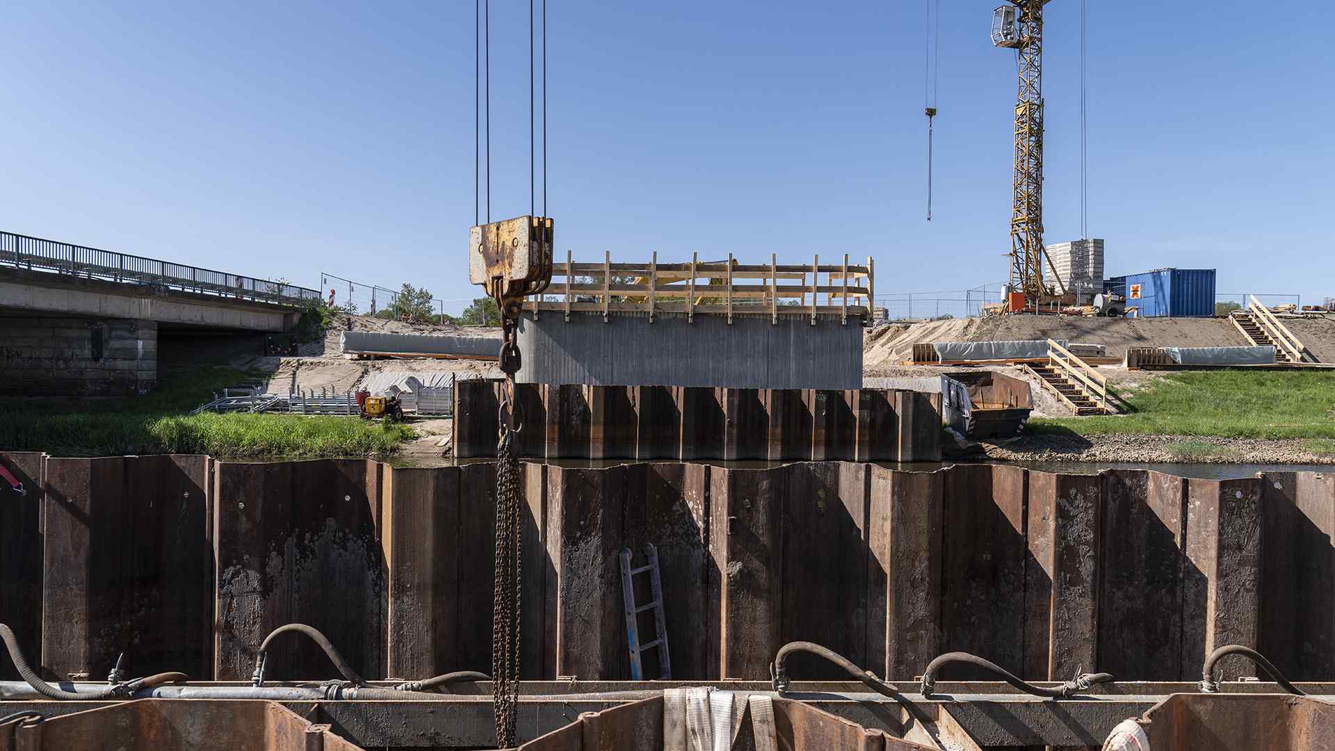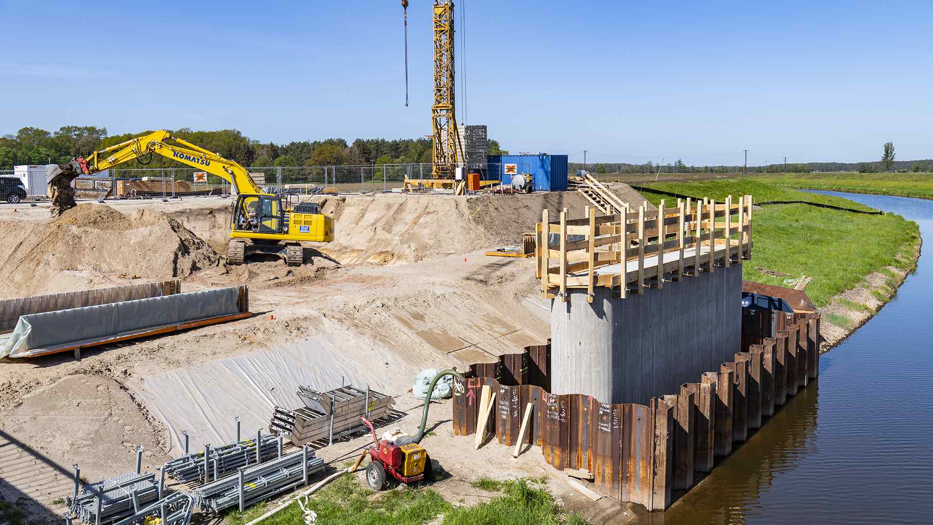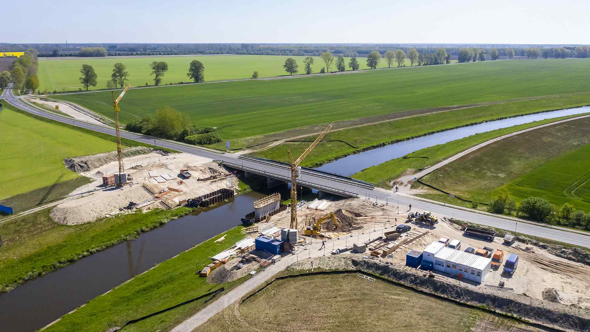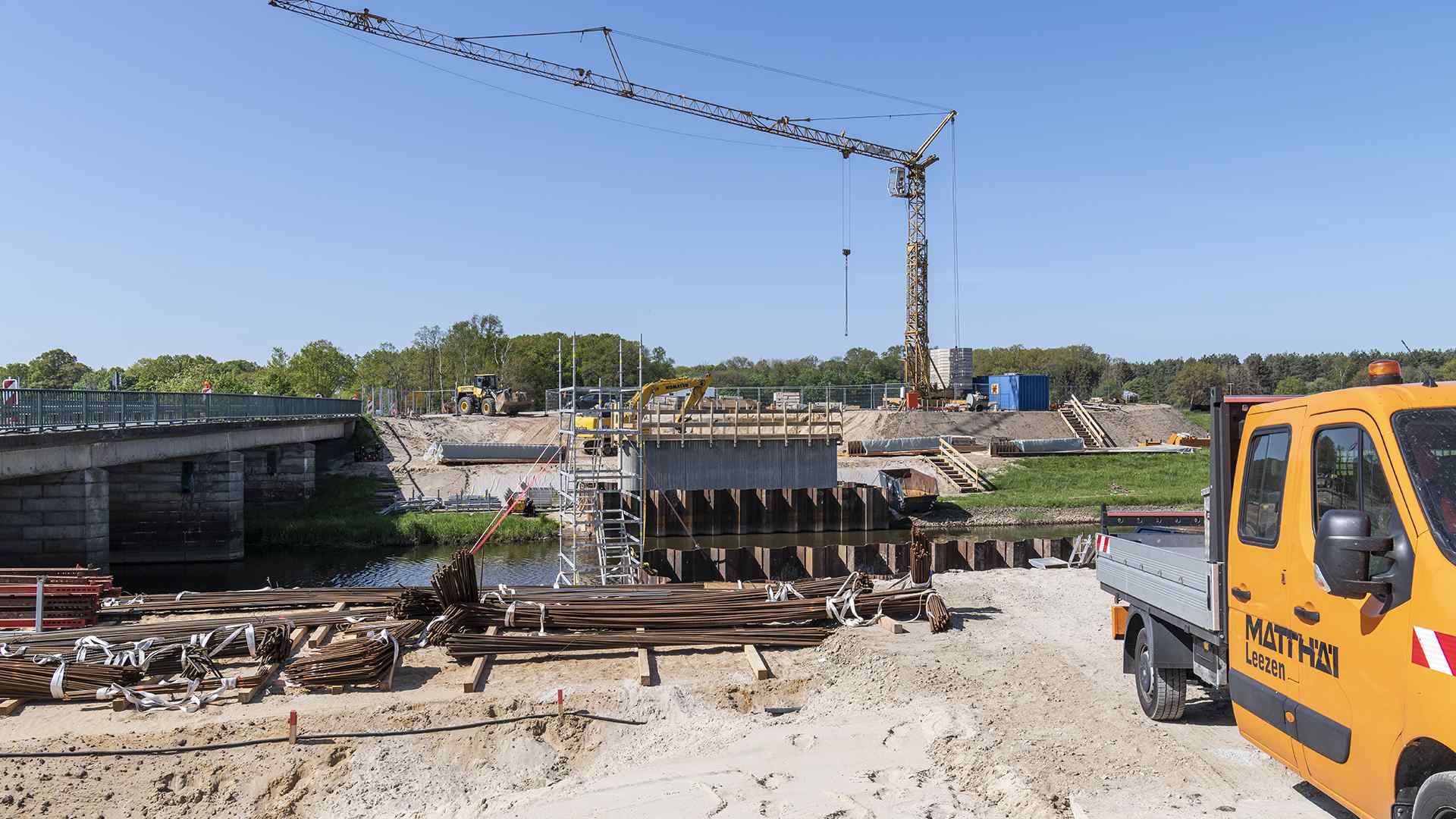 Matthäi Leezen ist mit Bauarbeiten auf der Bundesstraße 191 bei Dömitz beauftragt worden. Unser Standort errichtet hier eine Ersatzbrücke über die Löcknitz.