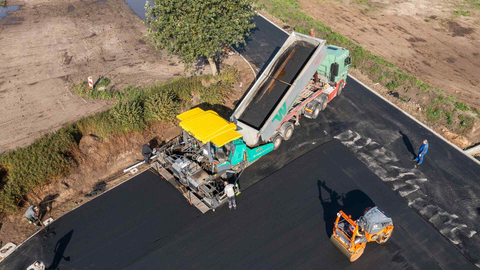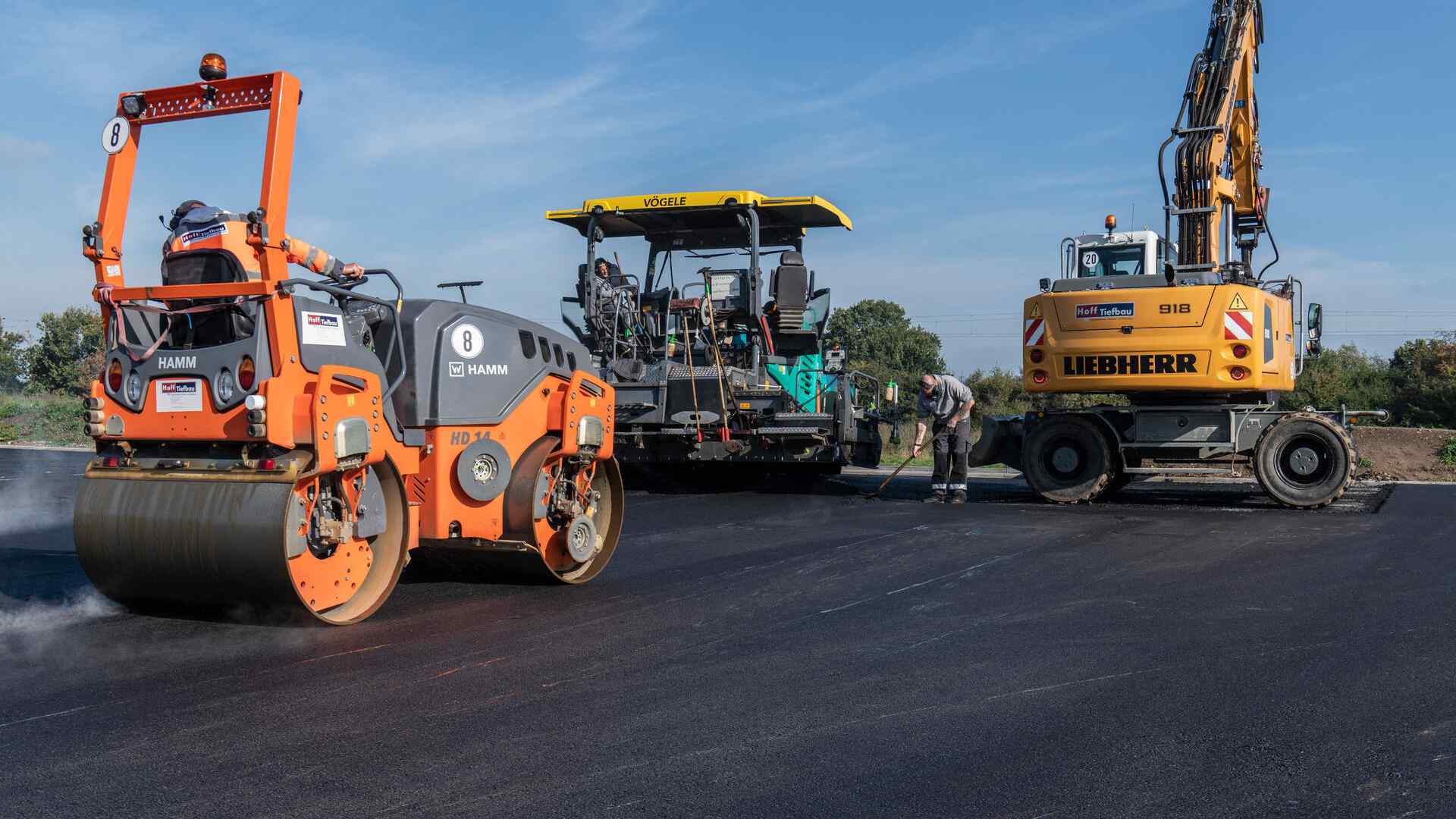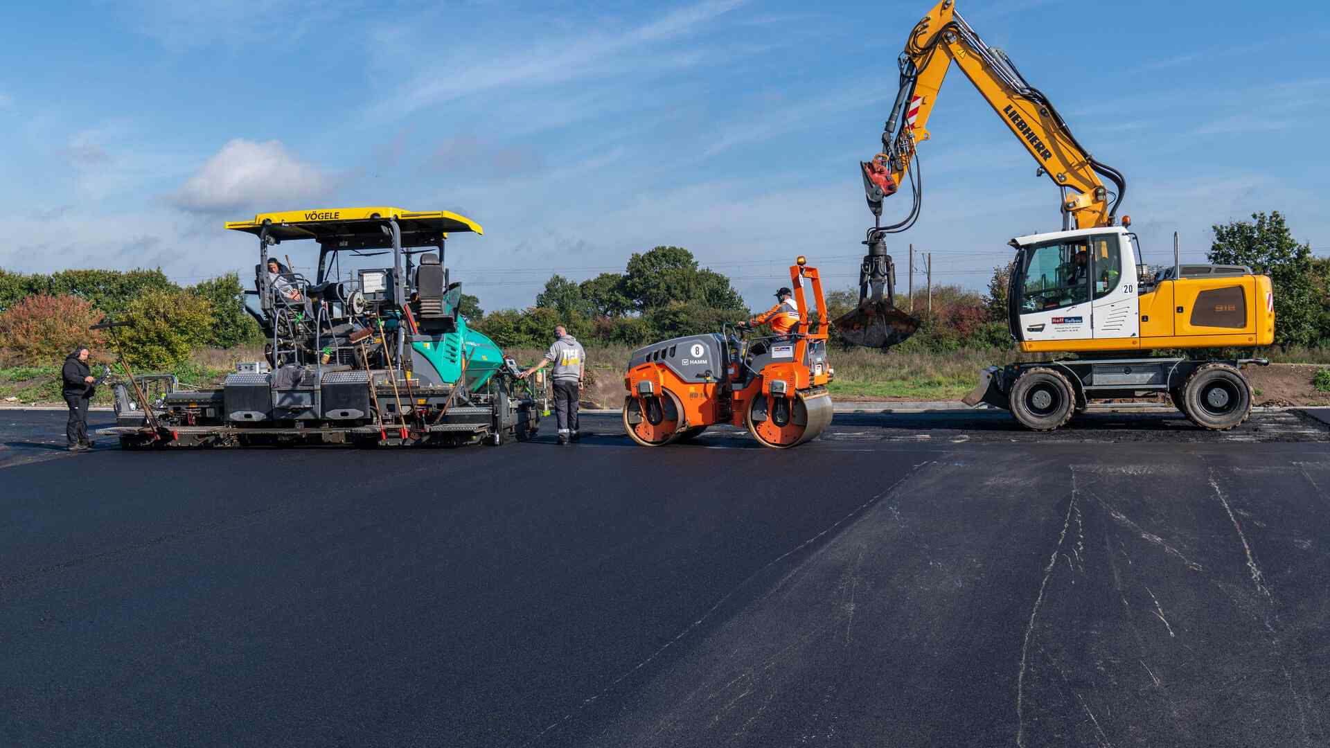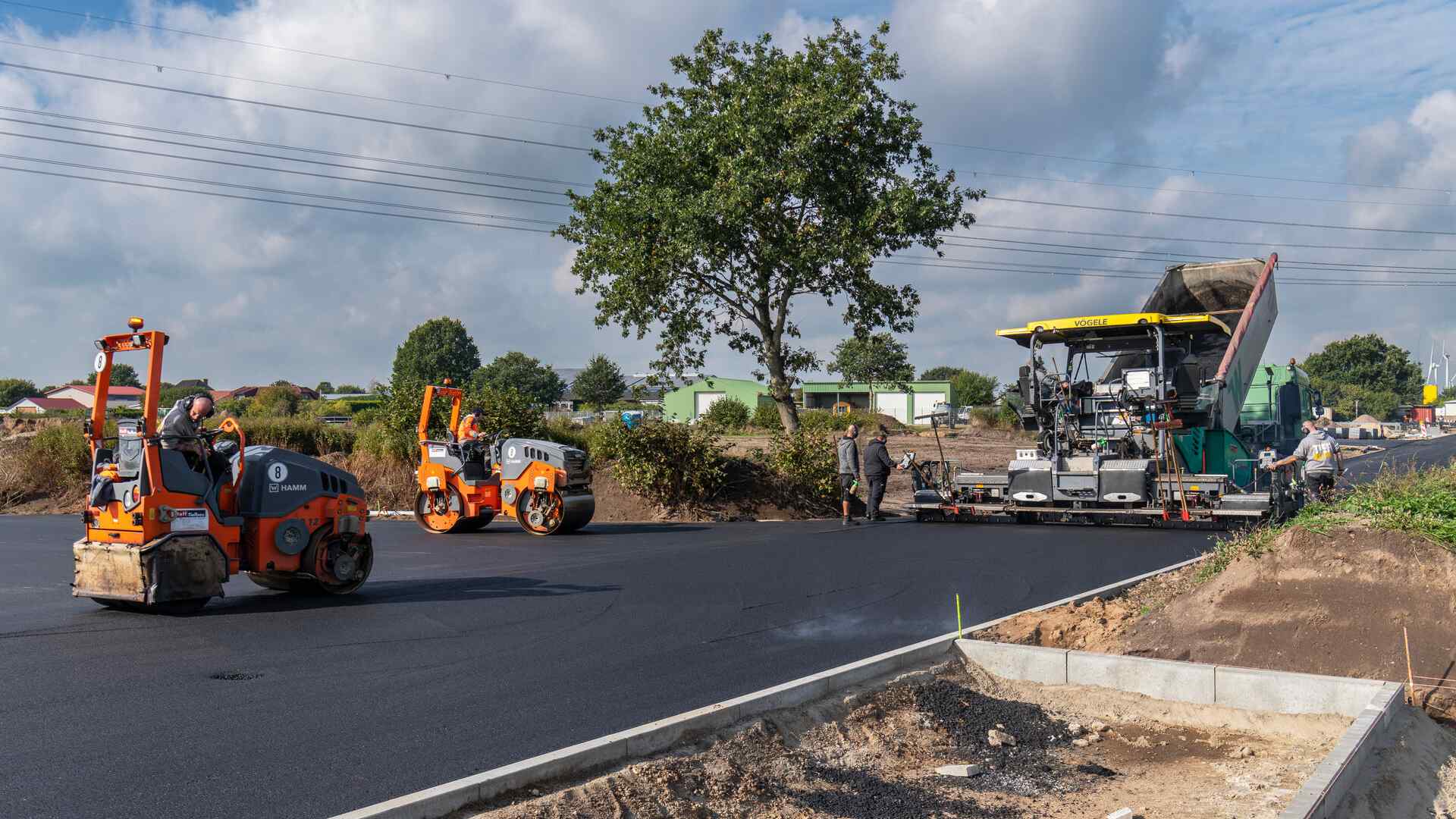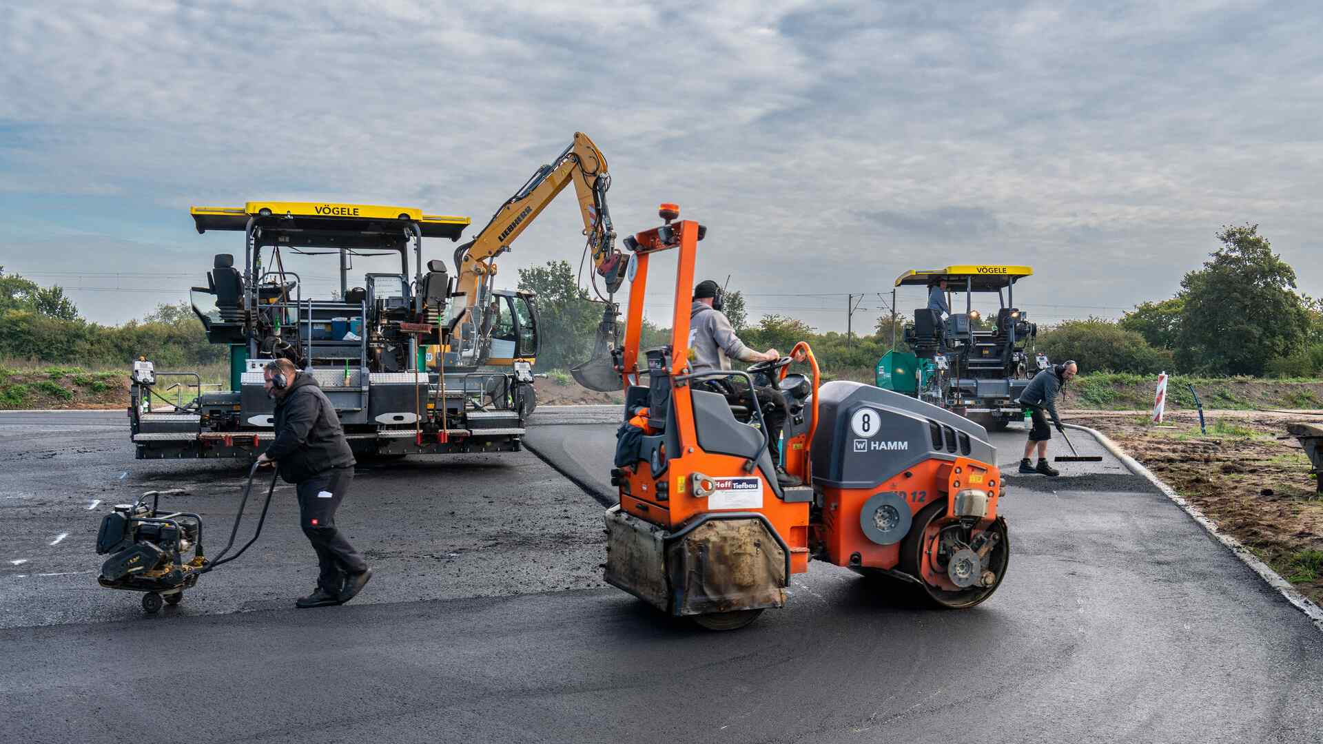 Die umfänglichen Straßen- und Kanalbauarbeiten beinhalteten unter anderem Bodentransport, Verdichtungskontrollen und die Verlage von Versorgungsleitungen (Wasser, Strom, Gas, Breitband).