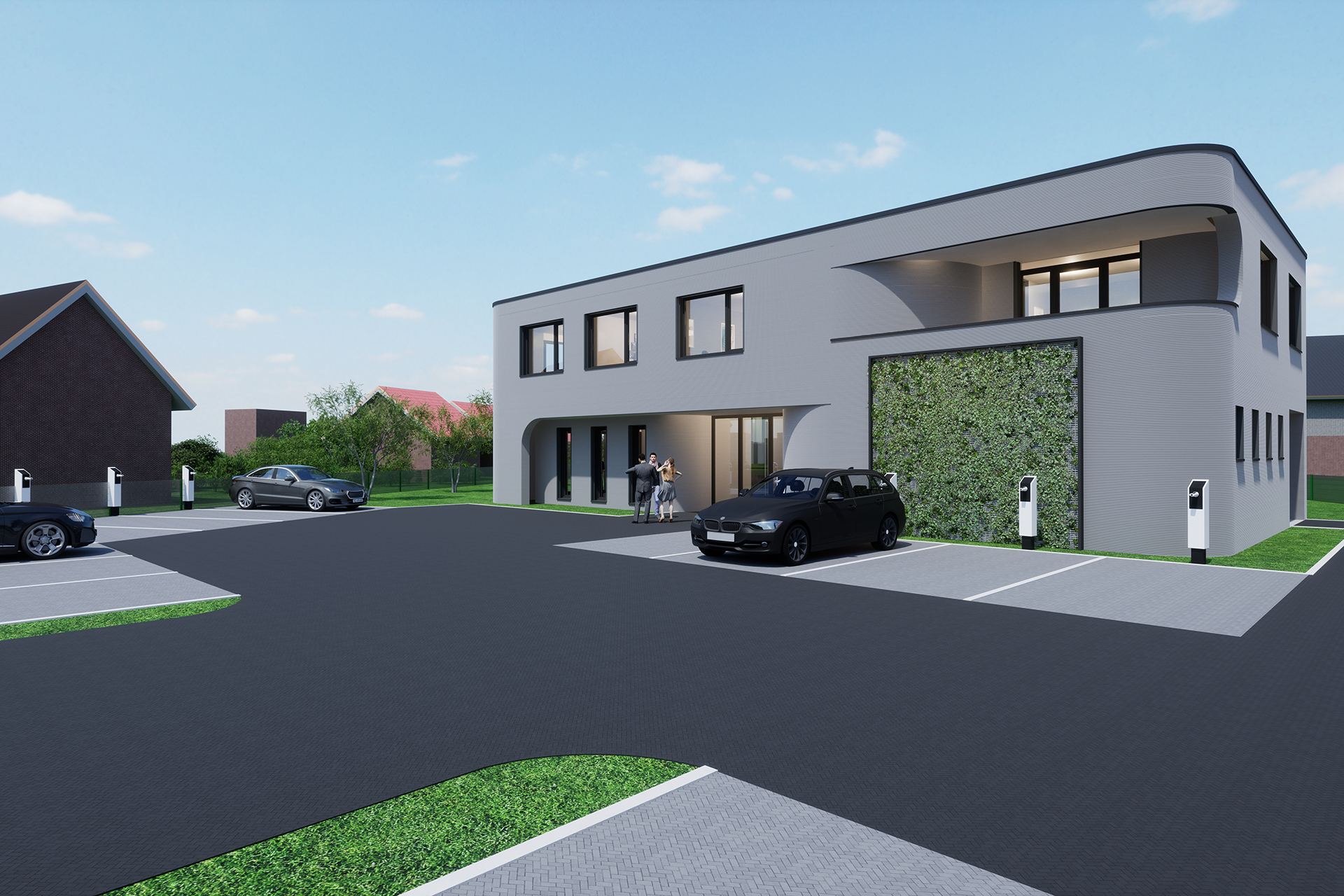 Das Bürogebäude wird nach Fertigstellung eine Höhe von rund 7,40 Metern, eine Länge von 22,50 Metern und eine Tiefe von 13,50 Metern aufweisen. Die Fassade und Formgebung orientieren sich an architektonisch anspruchsvollen Gestaltungsprinzipien. Fundament, Bodenplatte, Decken und Dach werden in klassischer Bauweise ergänzt. Die geplante Gesamtfertigstellung liegt im Dezember 2025.